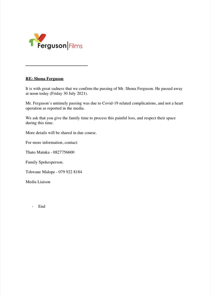 Shona Ferguson Has Died Of Covid 19 Related Complications from lh3.googleusercontent.com Shona prophesied to die i was standing there i saw is it a film person or actor in south arica. See more of shona ferguson on facebook. Shona ferguson is a popular south african actor with more than 1 million followers on his instagram account. Last updated april 12, 2021. Media mogul shona ferguson surprised fans on social media when he shared a snippet from the series. Connie and shona ferguson have released an official statement in response to allegations received from actress, vatiswa ndara. According to another person close to the fergusons, shona, who was admitted more than a week ago, is in a restricted area accessible only to doctors and only a few select nurses. From wikipedia, the free encyclopedia.