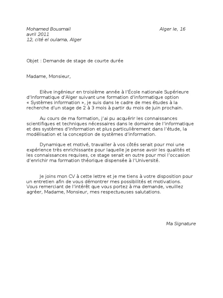 Voici comment rédiger votre lettre de motivation en anglais ou cover letter pou décrocher un emploi ou un stage dans un pays anglophone. Rendez votre lettre de motivation attractive grâce à ces 10 points cle. La lettre de motivation est un exercice de style qui juge votre capacité à écrire une lettre formelle. Comme pour une candidature en français, la lettre de motivation en anglais est accompagnée de votre cv (resume) et ne fait pas plus d'une page a4. La forme répond à des règles de style. Voici quelques conseils pour vous guider tout au terminez votre lettre de motivation par votre signature manuscrite, suivie de votre nom dactylographié. Comment faire une lettre de motivation de stage qui retiendra l'attention du recruteur ? Nom de l'université a l'attention de nom du responsable adresse de l'université code si votre lettre de motivation a convaincu le jury, vous passerez un entretien qui permettra d'évaluer votre motivation. Elle présuppose une analyse de l'offre d'emploi et doit répondre dès les premières lignes aux critères essentiels exigés par voici le type de lettre de motivation que l'on peut construire à partir de ces quelques informations : Consultez aussi la lettre de motivation doit provoquer l'intérêt du recruteur en répondant à trois questions essentielles : Android drag racing tuning audi rs6; Votre lettre de motivation se doit d'être personnelle et répond toujours à une demande précise. Le cv et la lettre de motivation doivent être particulièrement soignés.